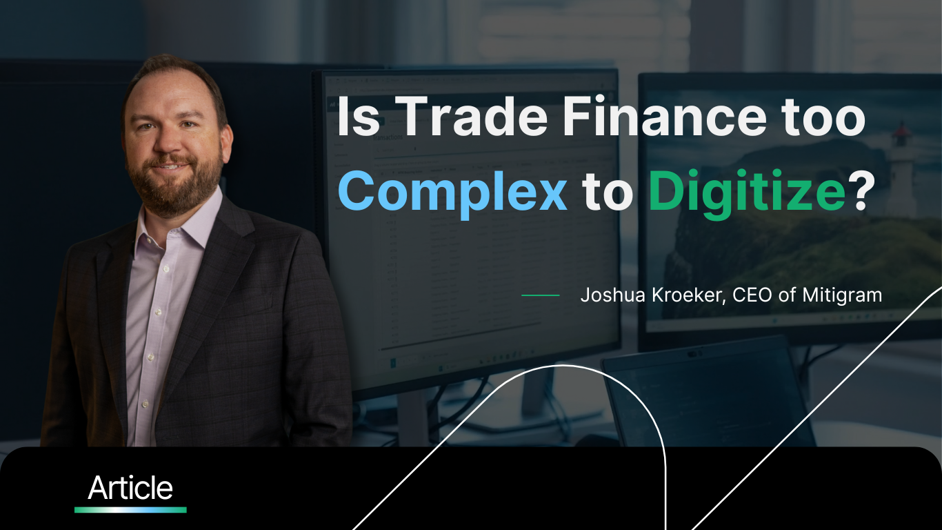 There are promising signs. Platforms like Mitigram are using historical and live data to help corporates benchmark trade finance pricing and manage counterparty risk while providing AI-powered automation for some of the most manual processes in trade finance. We believe that this kind of solution – immediate value creation, data-driven, and user-centric, is exactly what trade finance needs.