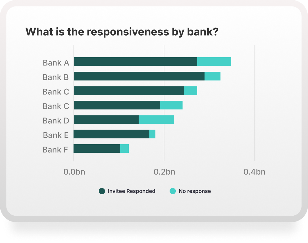 Get real-time visibility around pricing trends, team activities, bank performances, and more – backed by your own data and our industry benchmarks.